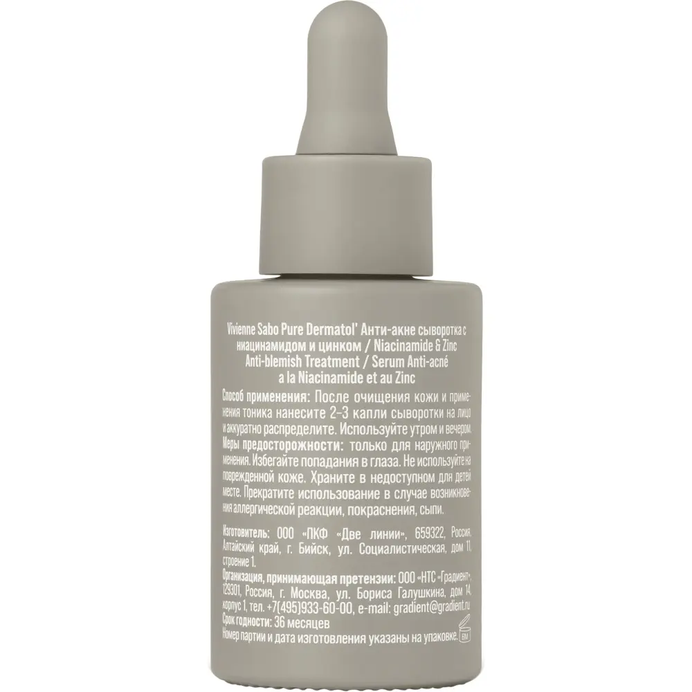 Анти-акне сыворотка с ниацинамидом и цинком для проблемной кожи, 30 мл