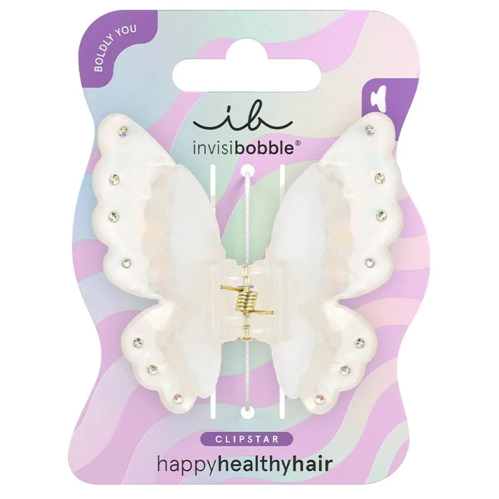Есть ли дресс-код в школе фей? Незаменимая деталь образа каждой волшебницы — сверкающая заколка-бабочка invisibobble Clipstar Fairy Fierce с жемчужным перламутровым блеском. По краям заколка украшена маленькими стразами, символизирующими женственность и неудержимую силу. Крабик позволяет завершить образ всего за несколько секунд: пара движений — и прическа готова! Укладка с небрежно выпущенными прядями у лица, элегантный завиток или романтичная «мальвинка» — заколка надежно при этом бережно зафиксирует волосы в любой прическе в течение всего дня. Подходит для всех типов волос и любых образов.