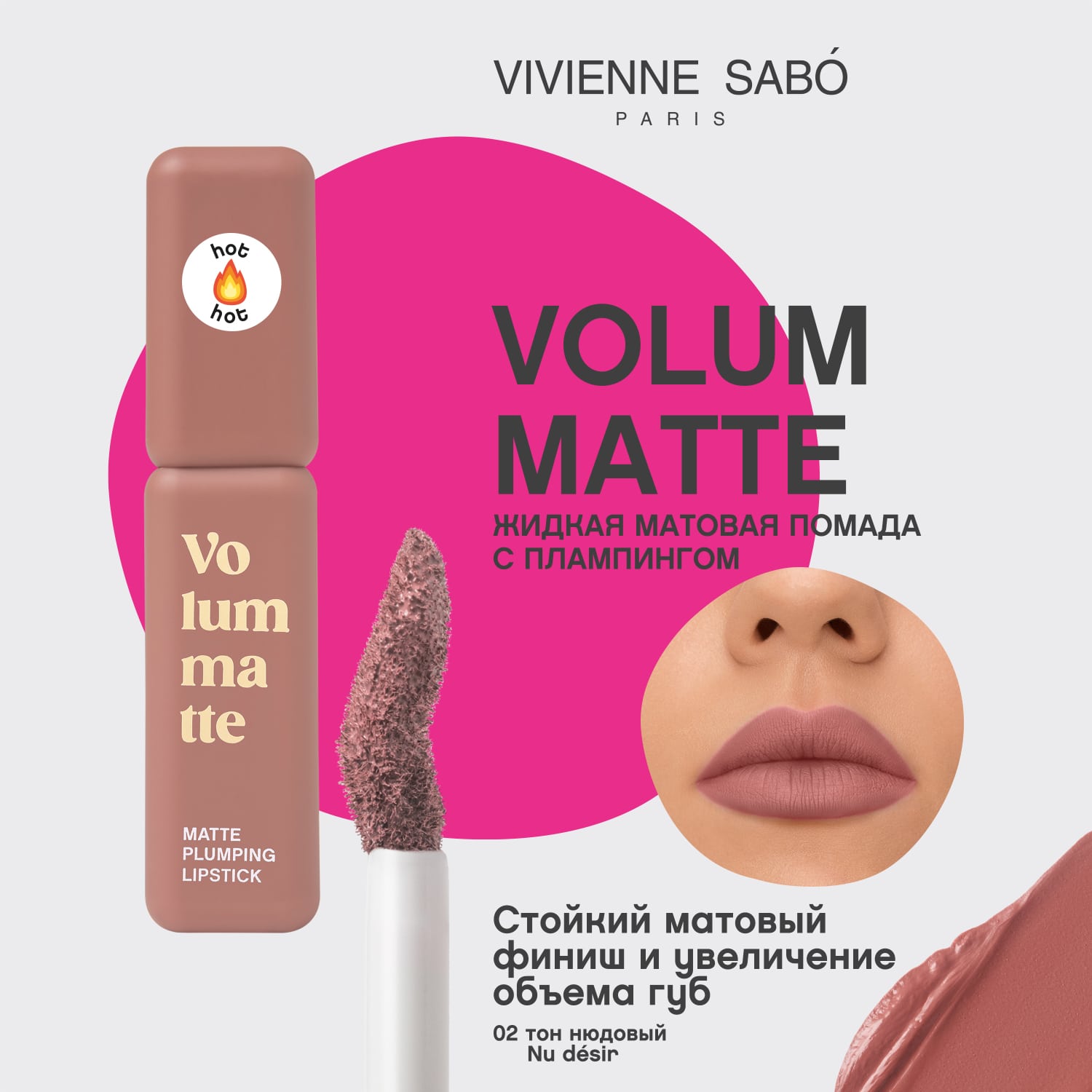 Устойчивая жидкая матовая помада для губ с плампинг-эффектом Volummatte, 02 нюдовый