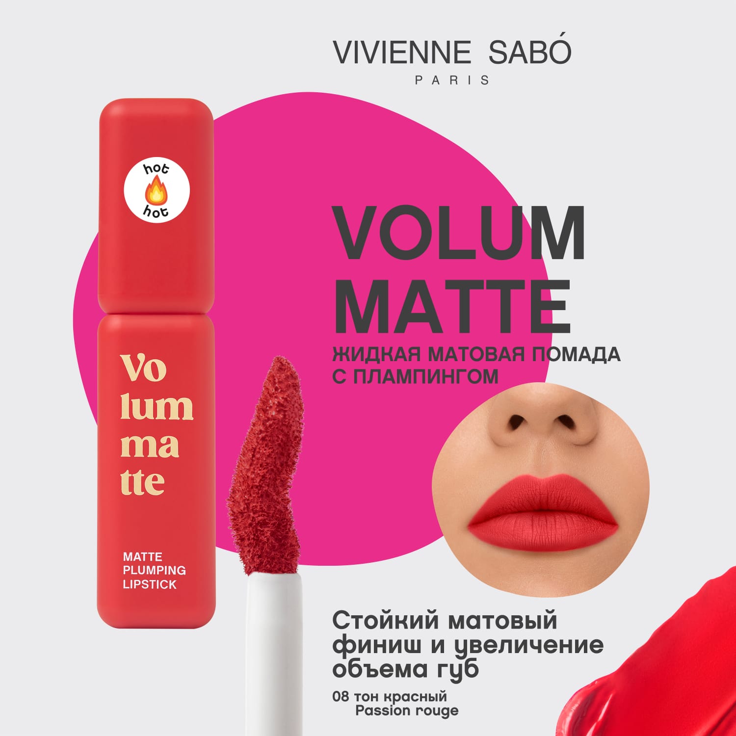 Устойчивая жидкая матовая помада для губ с плампинг-эффектом Volummatte, 08 красный